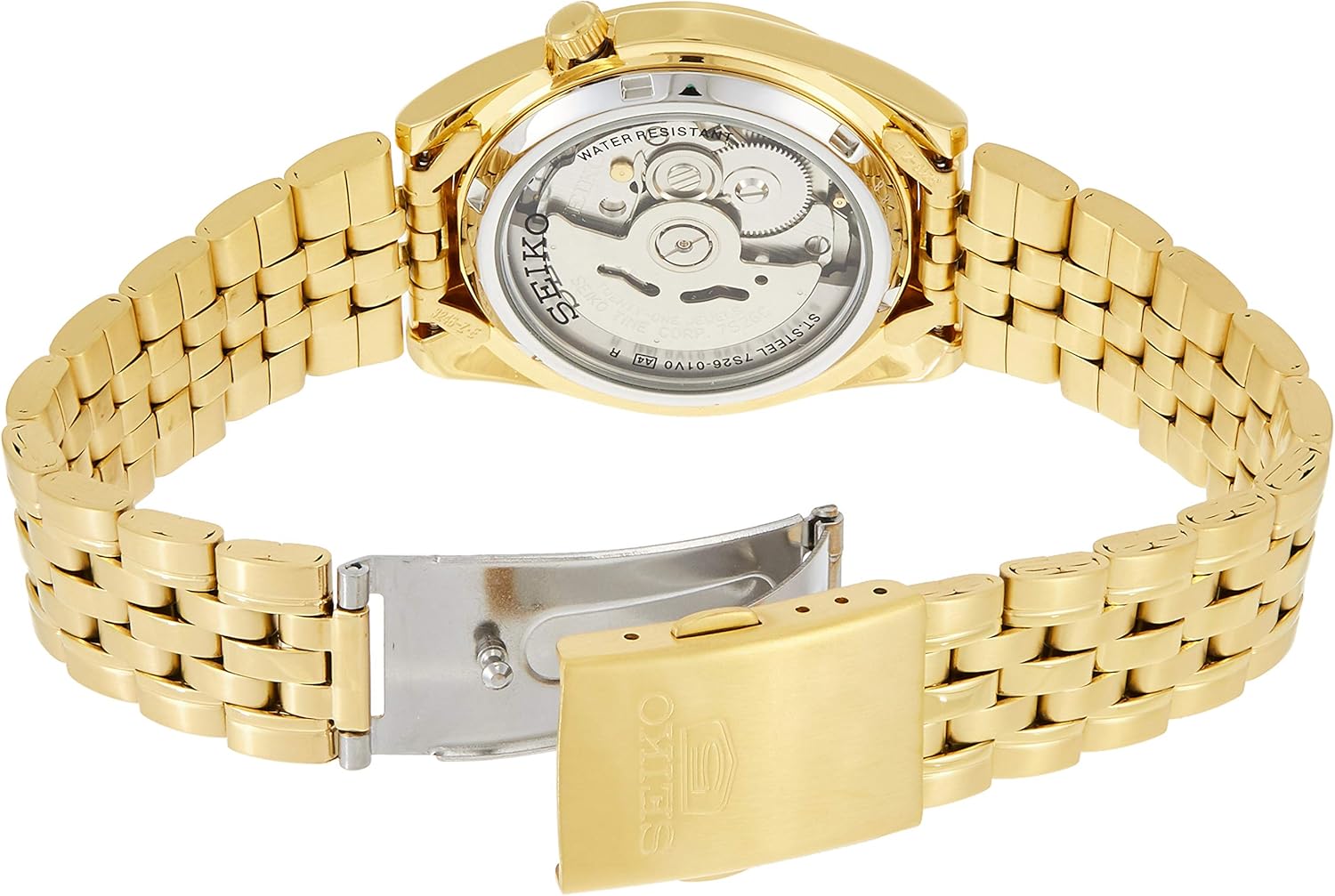Get Snkk52 Seiko 5 Automatic Gold Background. Day of the week and date display at the 3 position. Seiko 5 automatic men's gold plated white dial day/date vintage japan watch run.